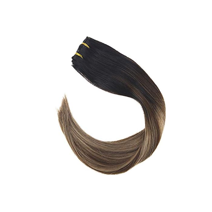 Buy Sunny 18inch Clip In Human Hair Extensions Full Head Balayage Clip In Hair Extensions Remy Human Hair Dip Dyed 1b Natural Black Fading To 4 Dark Brown With 18 Ash Blonde 120g 7pcs